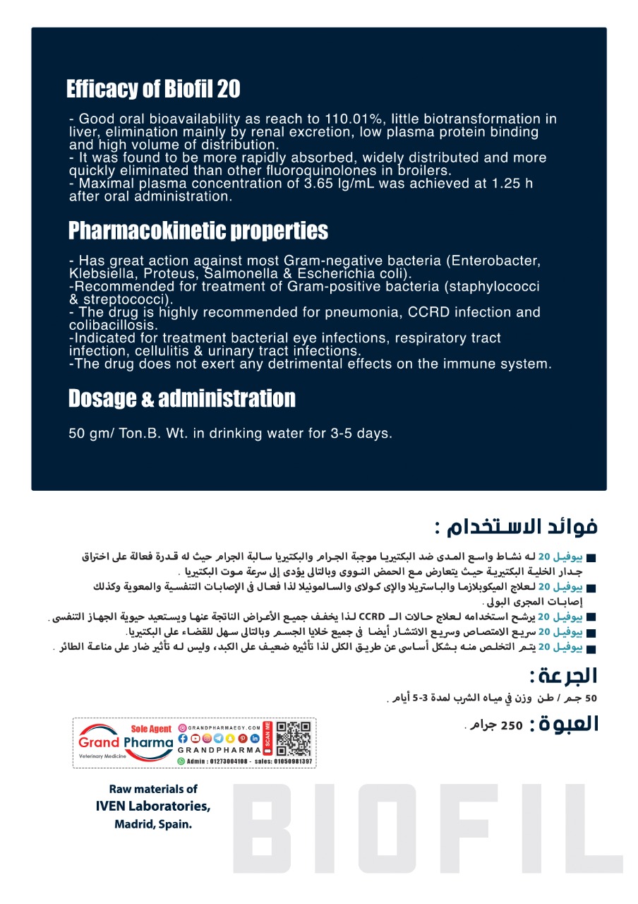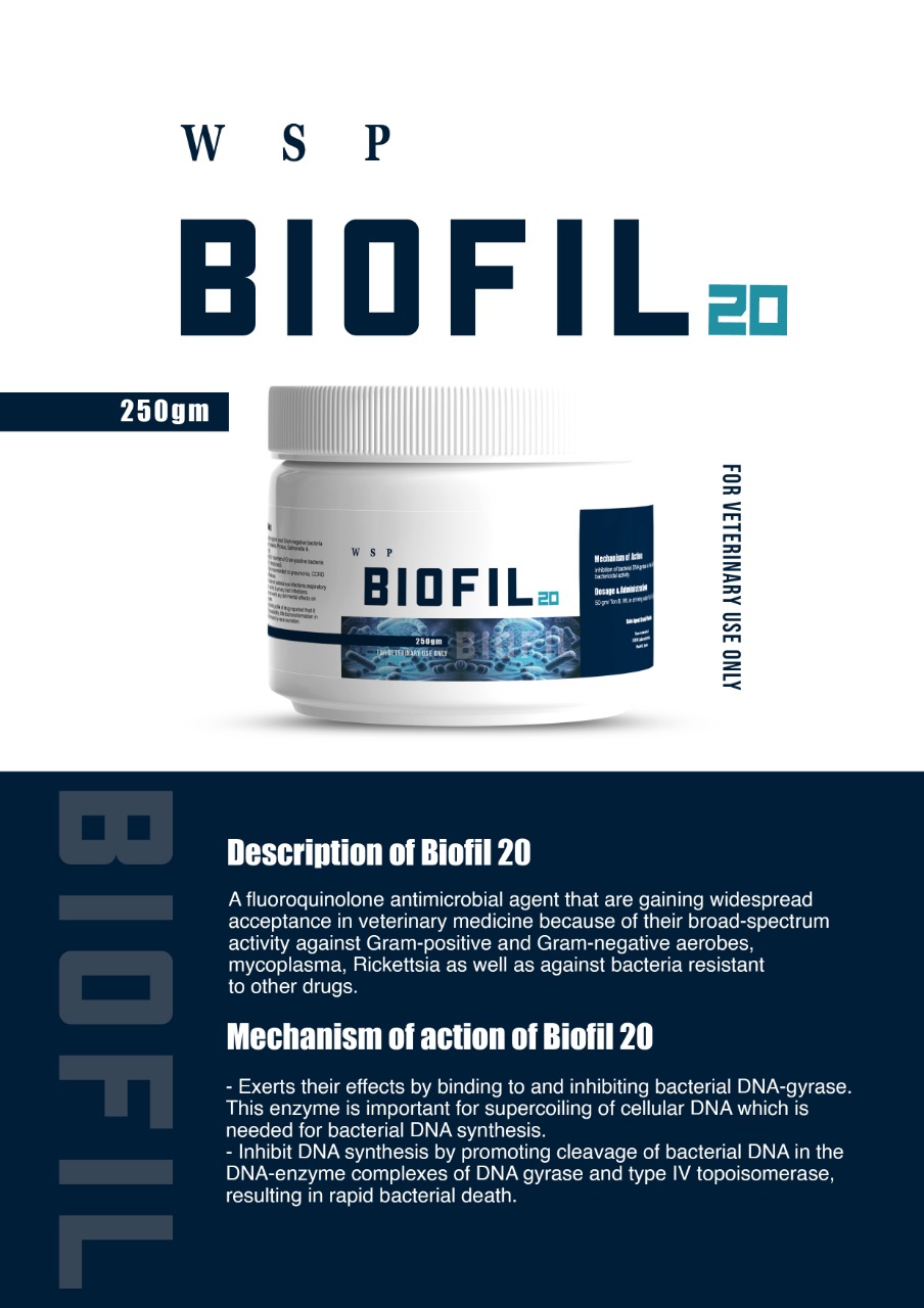 A fluoroquinolone antimicrobial agent that are gaining widespread acceptance in veterinary medicine because of their broad-spectrum activity against Gram-positive and Gram-negative aerobes, mycoplasma, Rickettsia as well as against bacteria resistant to other drugs.