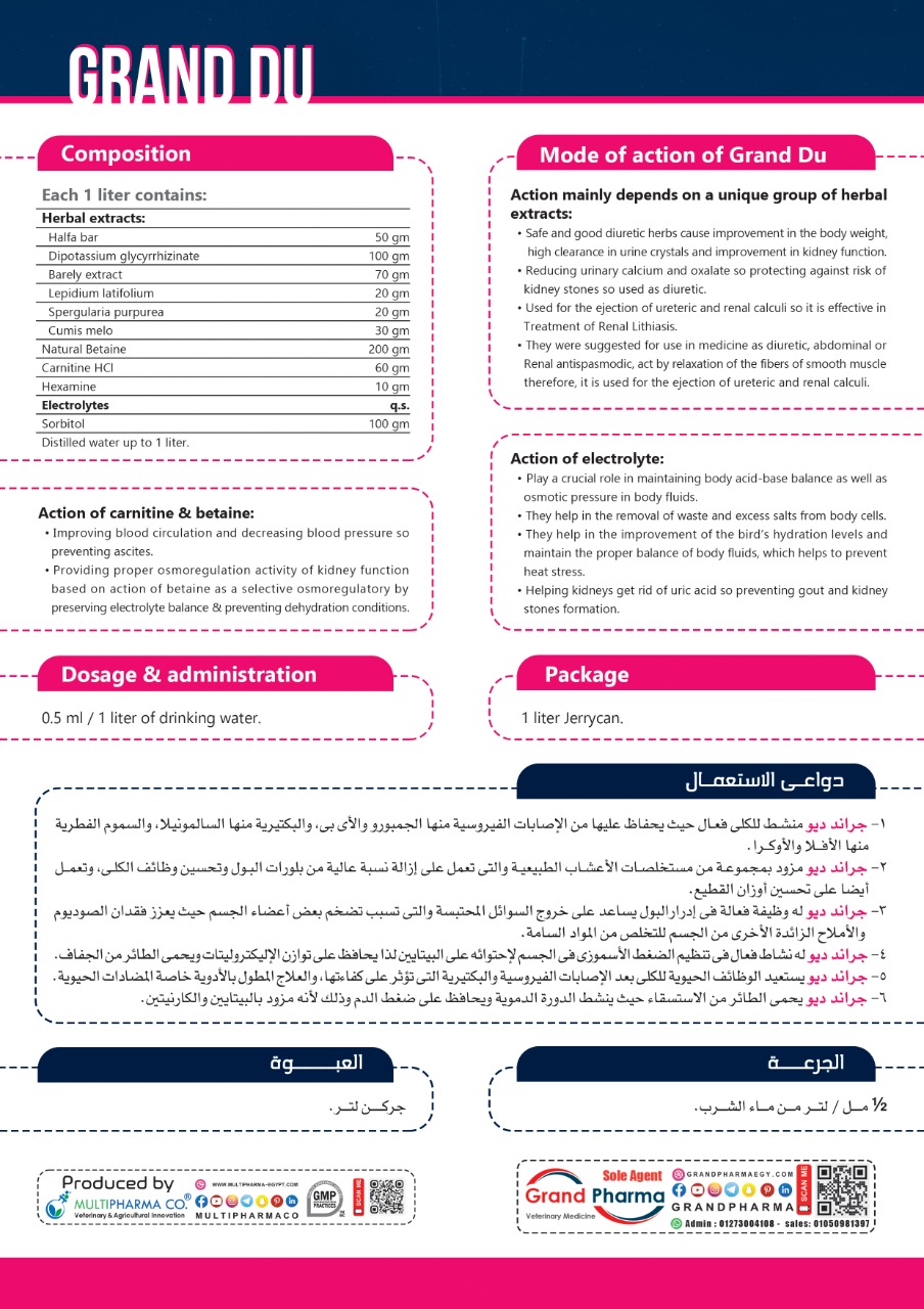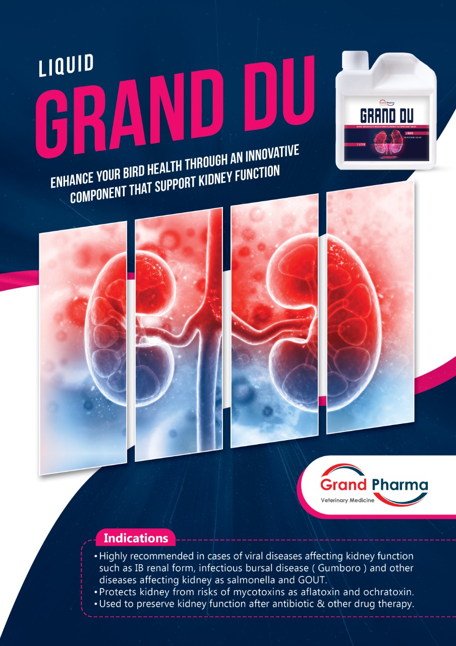 - Highly recommended in cases of viral diseases affecting kidney function such as IB renal form, infectious bursal disease (Gumboro) & other diseases affecting kidney as salmonella and GOUT.
